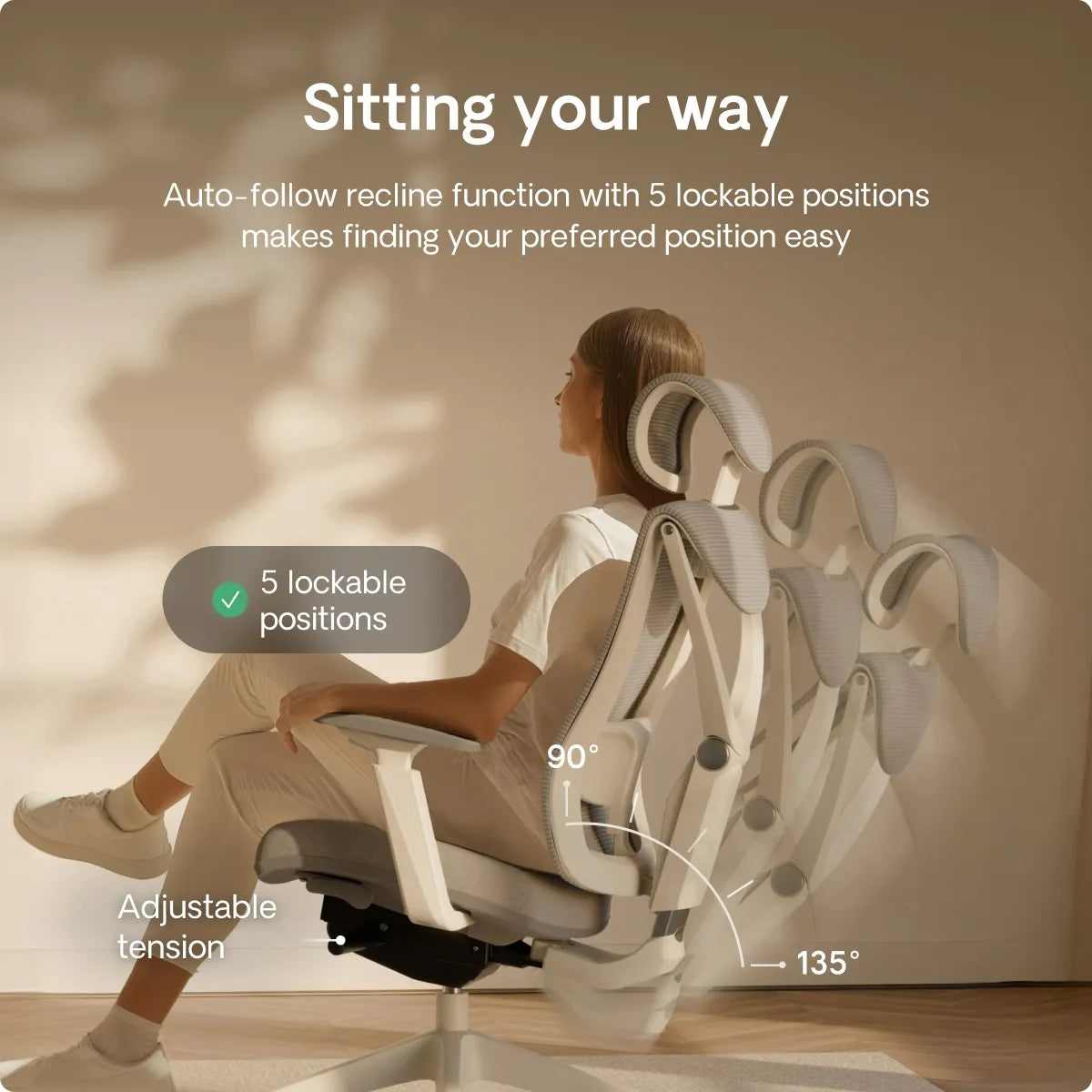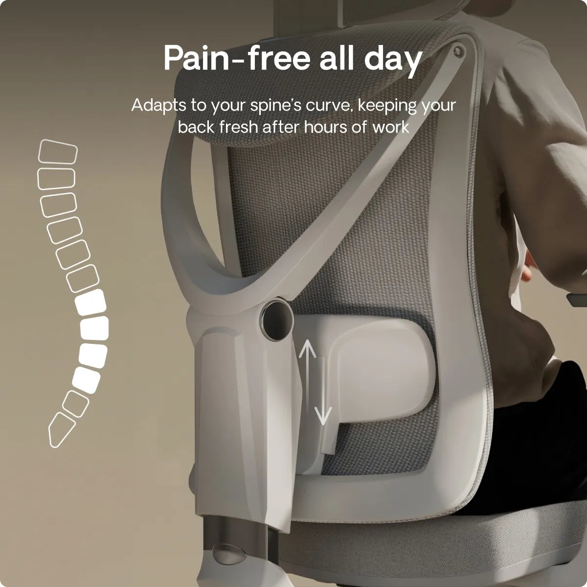 with adjustable tensionThe lumbar support adapts to your spine’s natural curve, helping your back feel fresh even after hours of work.